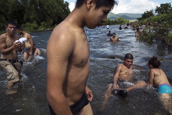 Migrantes hondureños se bañan en un río de Pijijiapan, México, el pasado 25 de octubre. Foto: Rodrigo Abd, AP.